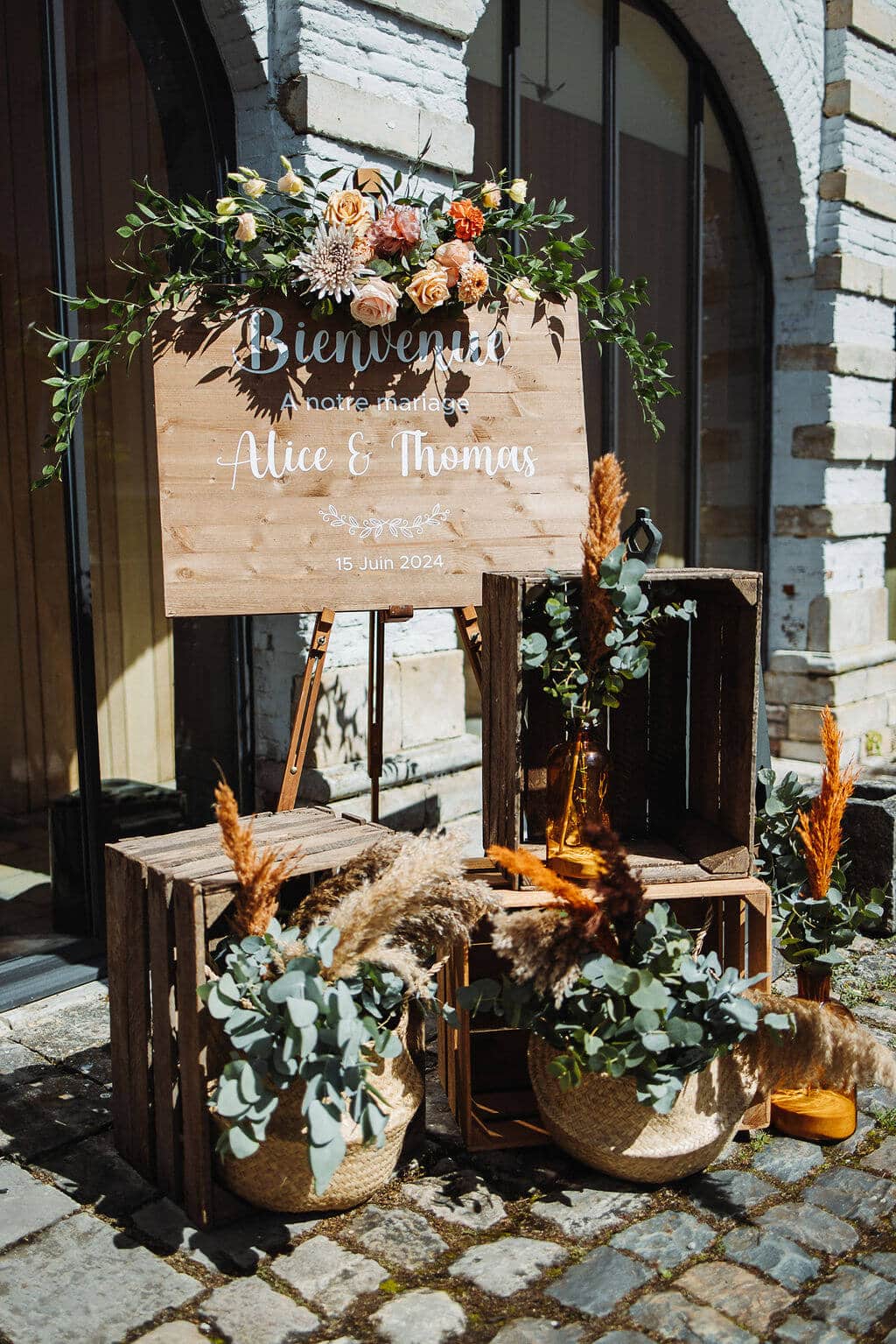Nous avons accompagné les mariés dans la création de la scénographie et assuré la coordination du jour J pour que tout se déroule parfaitement.